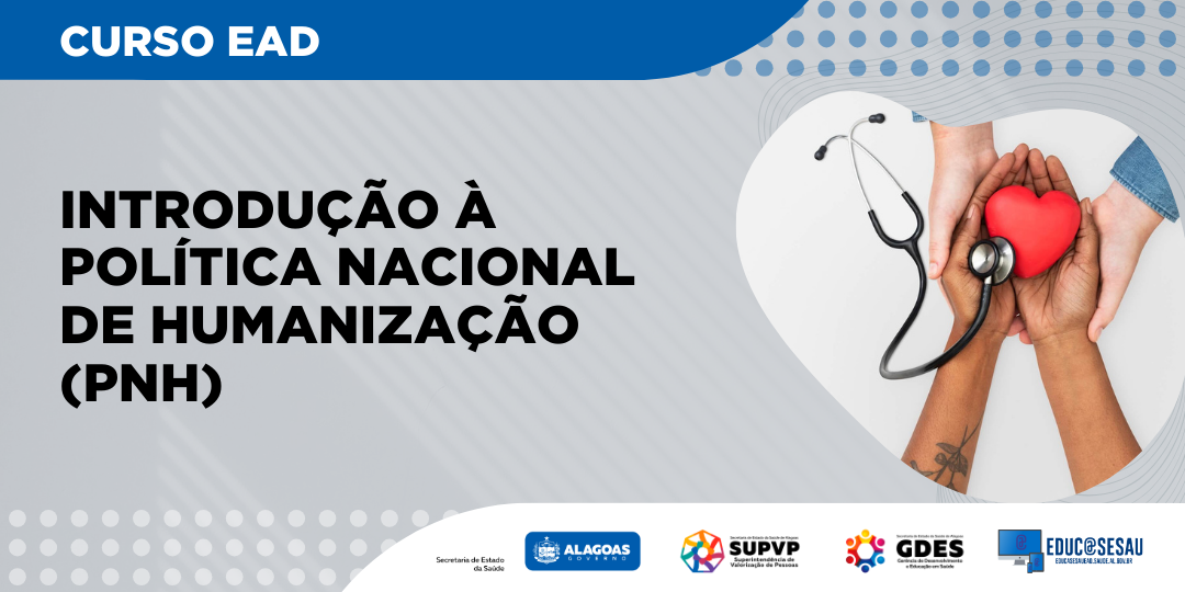 O curso Introdução à Política Nacional de Humanização - autoinstrucional, destinado a atender aos profissionais de saúde que atuam no SUS, com carga horária de 40h, estruturado em 07 (sete) módulos contendo vídeos, textos, atividades de fixação e avaliação final.