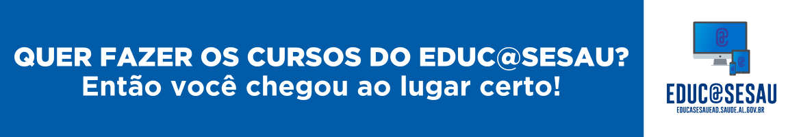 Educ@Sesau é plataforma de Educação a Distância (EAD) da Secretaria de Estado da Saúde de Alagoas (SESAU). Instituída pela Portaria nº 1.642, de 16 de maio de 2018, tem como objetivo facilitar o acesso dos(as) trabalhadores(as) às ações educativas, com cursos on-line e gratuitos, proporcionando mudanças no processo de ensino e aprendizagem, a partir da reflexão sobre as práticas em saúde.